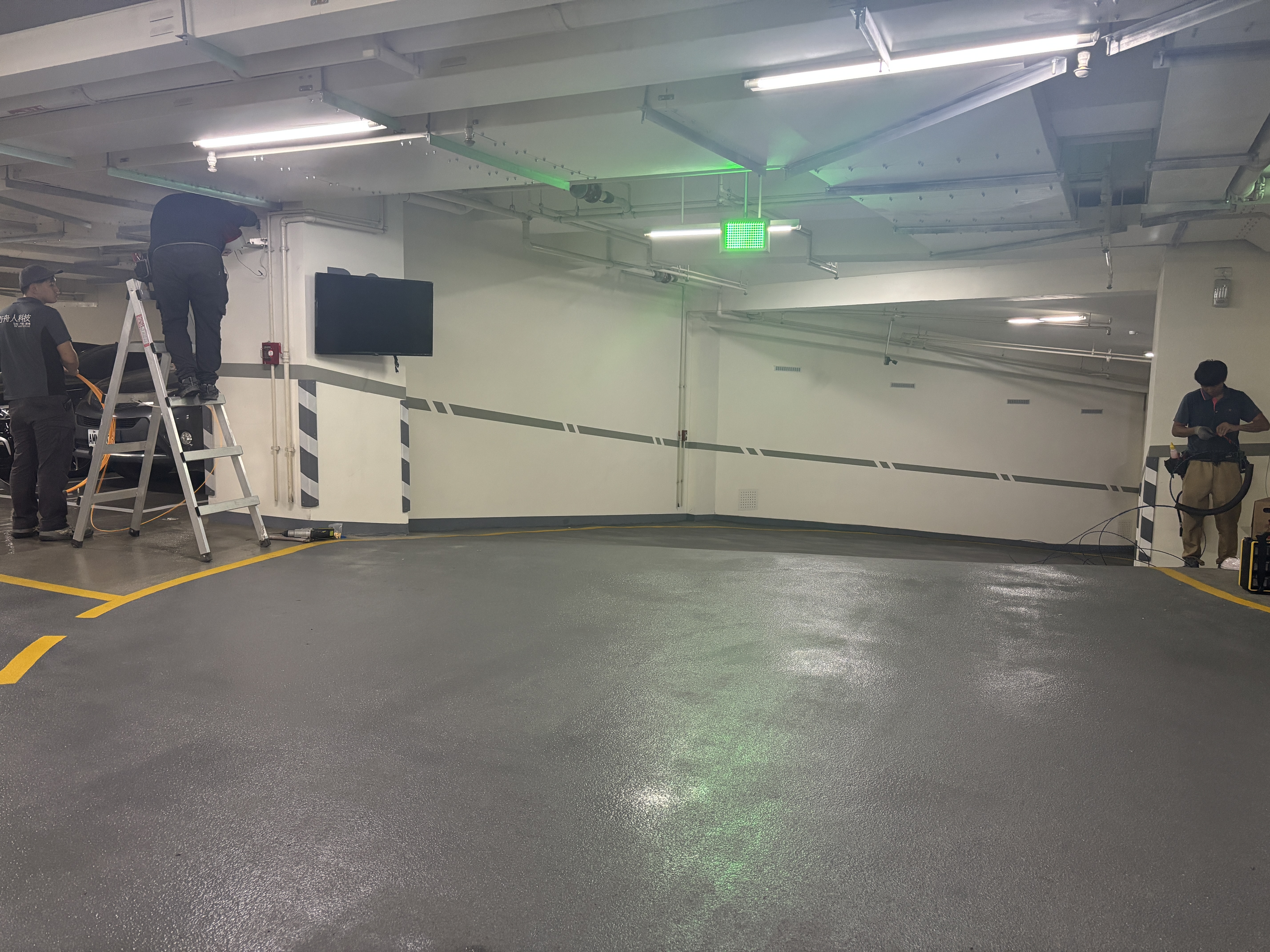 現今集合式住宅林立,大樓地下停車場所面臨的問題便是高車流卻多死角,為了提升地下停車場車道轉彎處的行車安全,本建案管理委員會委託我們設計與施工一套即時影像顯示系統。 由於地下停車場的死角多、車流量大,駕駛人在出入轉彎時容易因視線受阻而發生碰撞,因此透過即時監視畫面的呈現,可有效降低意外風險。 本案較為特殊的便是車道位於樓層中間,左右均有規劃停車格,但車道口兩側柱體卻會很大程度的阻擋駕駛人視線,導致上下行車輛非常容易於斜坡車道會車。 規劃改善方式:於上下行車道口增設監視器鏡頭,並將畫面轉送至對向車道口。 部分無線槽位置以顏色相近之壓條藏線,垂直線路則以弱電暗管穿線下樓。 電視安裝位置均選於進入車道前駕駛人習慣目視的路徑之上,故便能於進入車道前提前確認有無車輛。